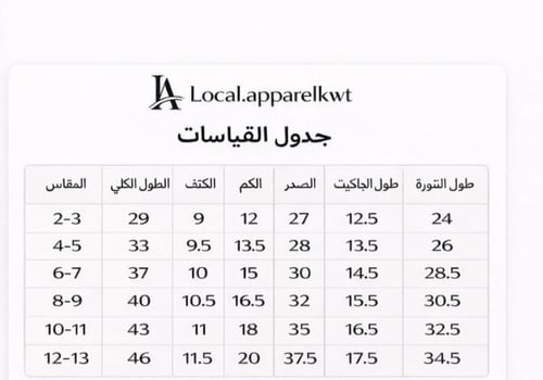 الكم، ألكتف، الصدر، الخصر، طول الجاكت والطول الكلي