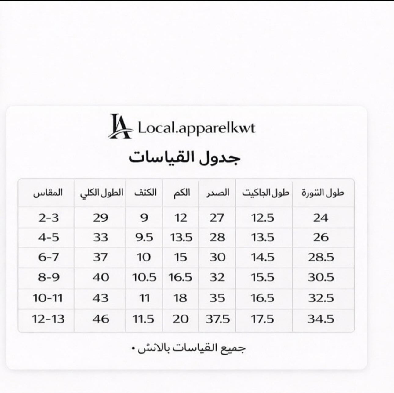 الكم، ألكتف، الصدر، الخصر، والطول الكلي